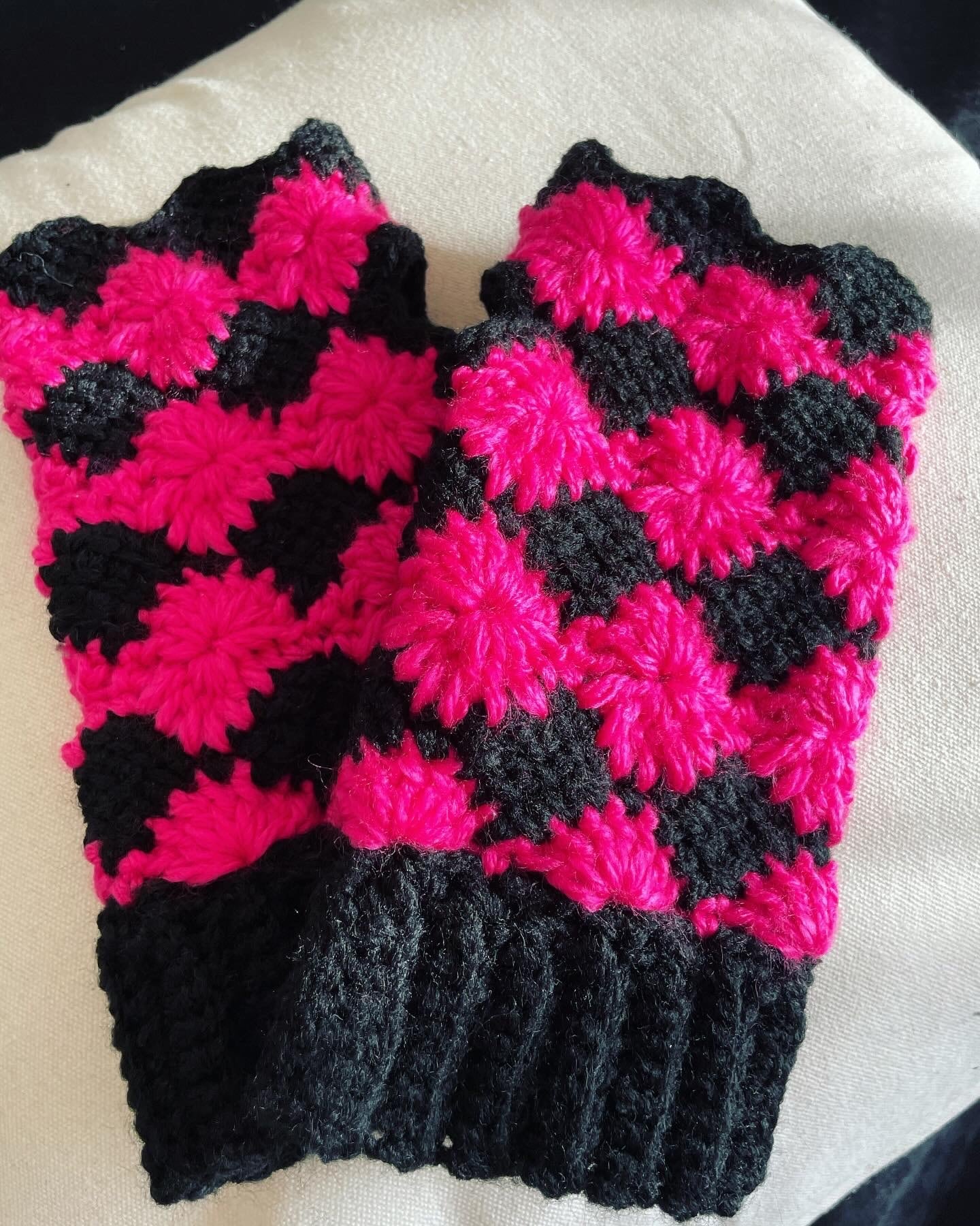 柄・デザイン···花柄、かぎ針編み、アフガン編み、黒、蛍光ピンク